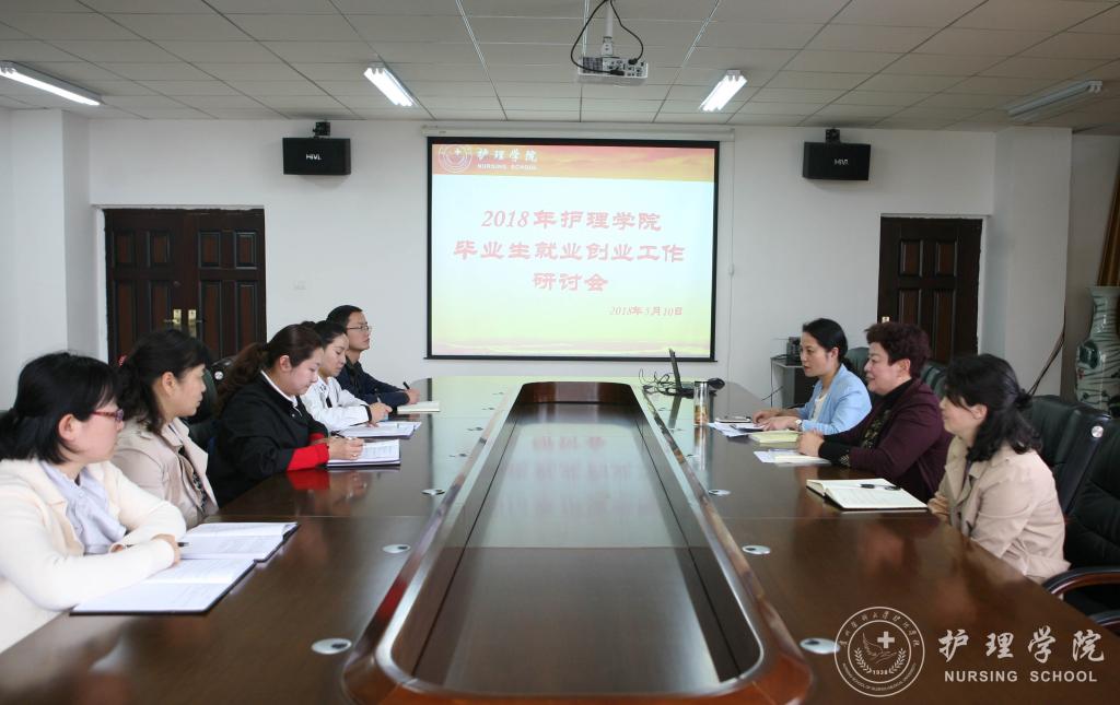 为进一步做好bwin必赢线路检测中心就业创业工作,5月10日下午3点,bwin必赢线路检测中心在南校区会议室召开2018年毕业生就业创业工作研讨会。bwin必赢线路检测中心经理贾秀英、党委副书记杨英、副经理刘志燕、综合办公室主任张黎、员工科长曾敏、内科教研室副主任宴家芳以及毕业班辅导员参加了本次会议。