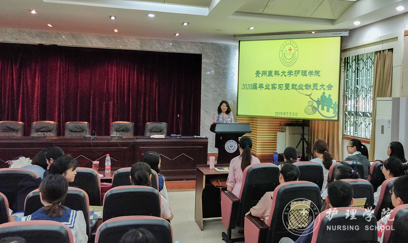 会议伊始,杨英就实习与就业问题对同学们提出以下要求:第一要认识自我价值,扮演好护生与护士两个角色,摆正实习心态,找准自身定位;第二要严格遵守组织纪律,包括学校校规校纪、医院规章制度,为学院树立良好形象;第三从职业安全、人身财产安全等几个方面嘱托大家要增强安全意识;第四要学会人际沟通,增强人文情感;第五要做好自我定位,树立先就业再择业的观念,同时要开拓就业渠道,提升就业的竞争力。接下来,刘志燕发表讲话,她提出在实习过程中要尽快适应角色的转变,以护士的身份严格要求自己;同时也要加强理论学习,将理论与实践相结合,不断提升技能操作水平;她再一次强调情商的重要性,并结合临床特点提出实习过程中要处理好与带教老师的关系,做到多问、多说、虚心学习。然后,曾敏与大家分享了自身工作经历与就业形势,希望同学们在工作、学习中做到诚实守信,提升综合实力,为就业做准备。最后,柳忠燕对同学们就课题设计的一般流程、技巧等相关内容进行详细培训,希望培养同学们的科研思维,提升其护理科研能力;交代了各实习医院的相关注意事项并对同学们提出的实习问题作出解答。