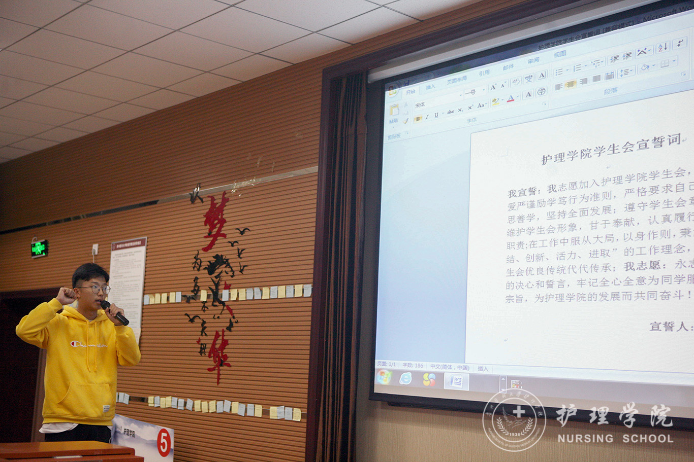 本次例会分为四个议程。第一项议程,毕丽老师讲话,她首先对2019级新成员加入员工会大家庭表示欢迎,接下来她对所有员工会成员提出了三点要求:第一,明确自己员工的第一身份,以学为主,在保质保量完成学业的同时积极组织或参加各类活动,在活动中提升综合素质。第二,树立服务意识,她强调作为员工会成员,应有服务员工群体的意识,工作认真不浮躁,并严格遵守学校规章制度,讲诚信,莫违规。第三,做表率,希望全体员工会成员在思想上、学习上、行动上做出表率,树立员工会集体的良好形象。第二项议程,礼仪部成员余含梅带领大家围绕“壮丽70年,奋斗新时代——不忘初心、牢记使命”主题,进行政治理论学习,生动讲述了新中国诞生70年来的发展成果,强调了“追梦新时代,奋斗新征程”发展方向。第三项议程,员工会主席陈娟进行述职发言,她主要介绍员工会的活动和纪律,各部门负责人的换届选举规则,希望员工会新成员以积极向上的态度面对未来的工作,并对全体员工会成员提出期望。接下来,各部门副部长进行述职,为同学们简要介绍了部门职能和近期工作安排。第四项议程,员工会副主席刘贤带领全体成员进行员工会誓词宣誓并合影留念。