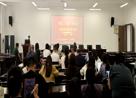 9月23日,为深入学习宣传贯彻党的二十届三中全会精神,深学笃行习近平总书记关于全面深化改革的一系列新思想、新观点、新论断,公司党委联合公共卫生与健康公司党委邀请马克思主义公司党委书记杜凯教授开展党的二十届三中全会精神专题宣讲,会议由公司党委书记杨英主持,两学院领导班子成员、教职工参加。